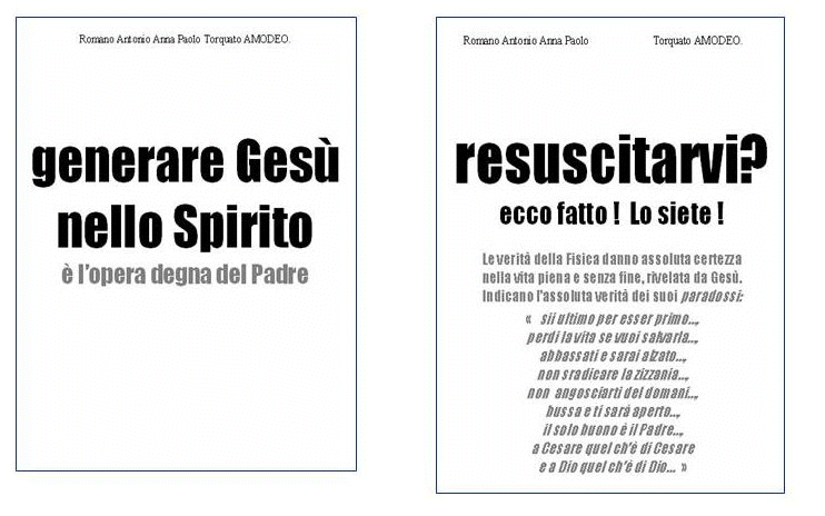 (1987) La vita oltre la morte (1996) Interventi di fisica (1998) Risposta alla Fides et Ratio (1999) Se Gesù spiegasse oggi in Parabole. (1.999) Eroe Vittima della Fides et Ratio (2.000) Il Perfezionismo. (2001) Il perché dei numeri. (2601)