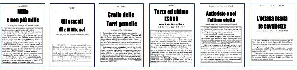 Mille e non più mille. (21.3.2003) Gli oracoli di Emanuel. (21.3.2003) Crollo delle Torri Gemelle. (30.3.2003) Terzo ed ultimo esodo. (16.4.2003) Anticristo e poi l'ultimo eletto. (1.5.2003) L'ottava piaga le cavallette. (10.9.2003) TERZO, dal Titolo "Un sole dall'Alto", che ha raccolto: