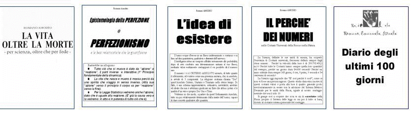 La vita oltre la morte (1996) Il Perfezionismo. (2001) L'Idea di esistere. (2003) Il perché dei numeri. (2001) Diario degli ultimi 100 giorni. (maggio.2004)