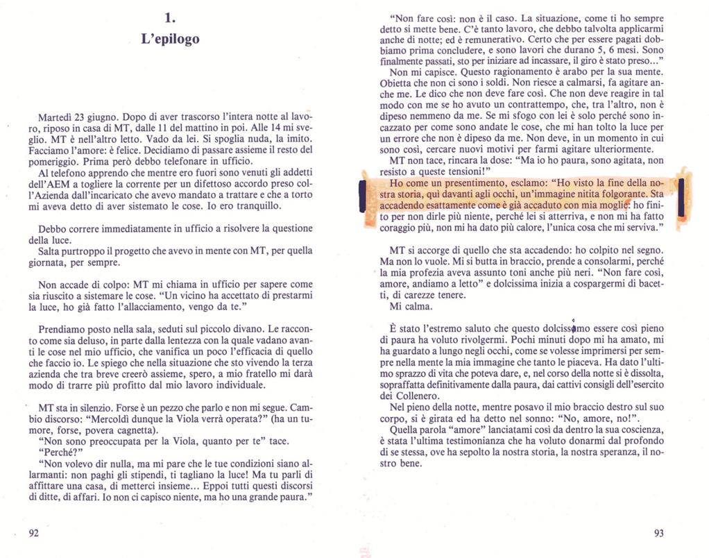 mai ultimato, perché raffigura il mio strappo a me stesso, il