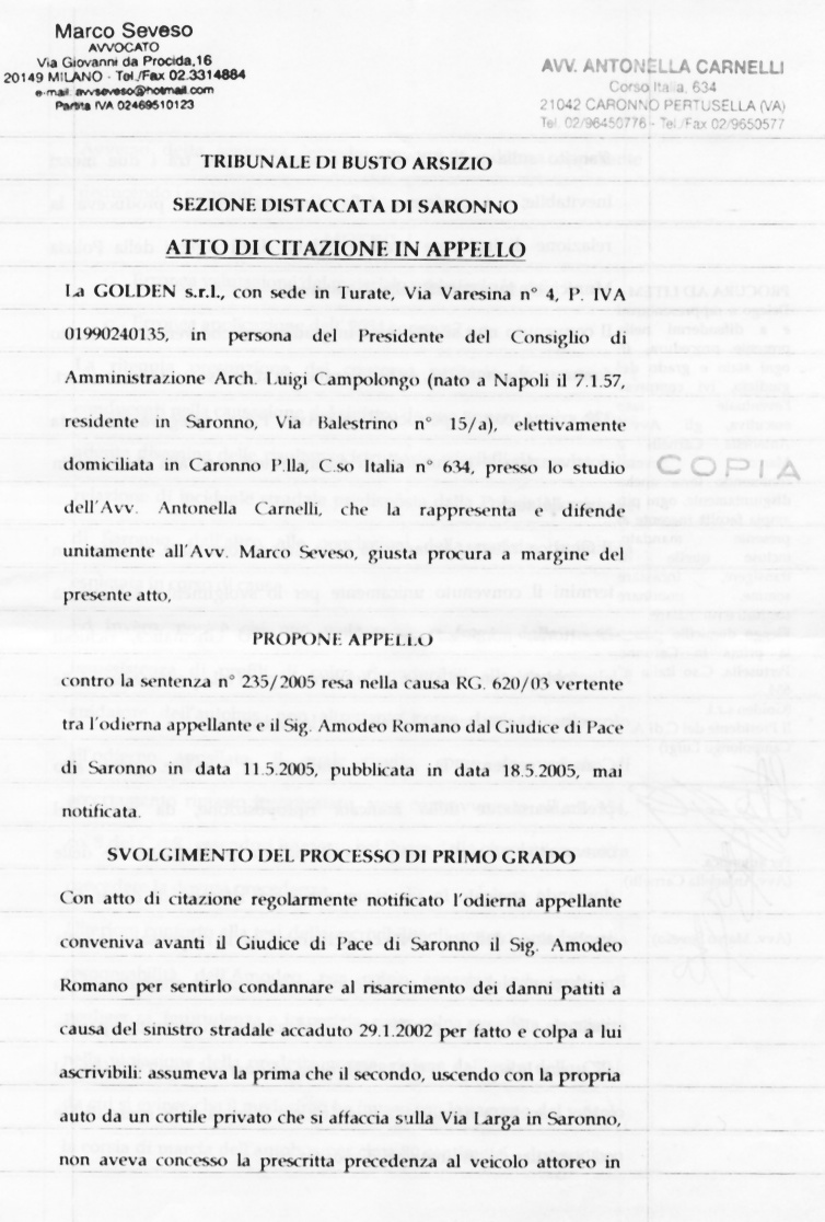 prima di recarmi in tribunale. Allora mi sono avvicinato a lui e gli